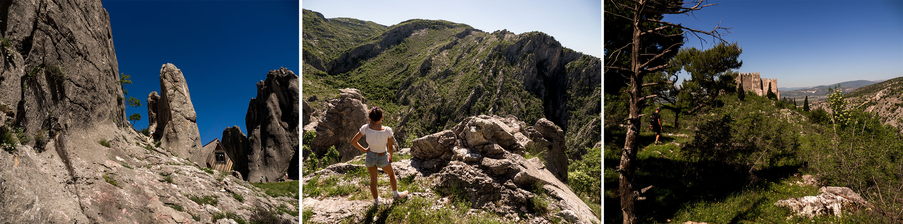 Voordat je naar Tjentiste rijdt kan je nog een leuke -niet zo moeilijke en leuke- hike maken in een gebied wat “the little Dolomites” wordt genoemd. Je kan hier parkeren. Ga dan rechtdoor zodat het fort op de heuvel aan je rechterhand blijft. Let op een cementen elektriciteitspaal en een paar meter verder zie je een kleiner houten pilaar met een bordje erop “Sektor Rebro”. Vanaf hier volg je de rode en witte cirkels op de stenen de heuvel op voor ong 30 minuten naar weer een houten pilaar met een bordje “Sektor Rebro”. Hier kan je een kleine vallei in en dan ben je er!